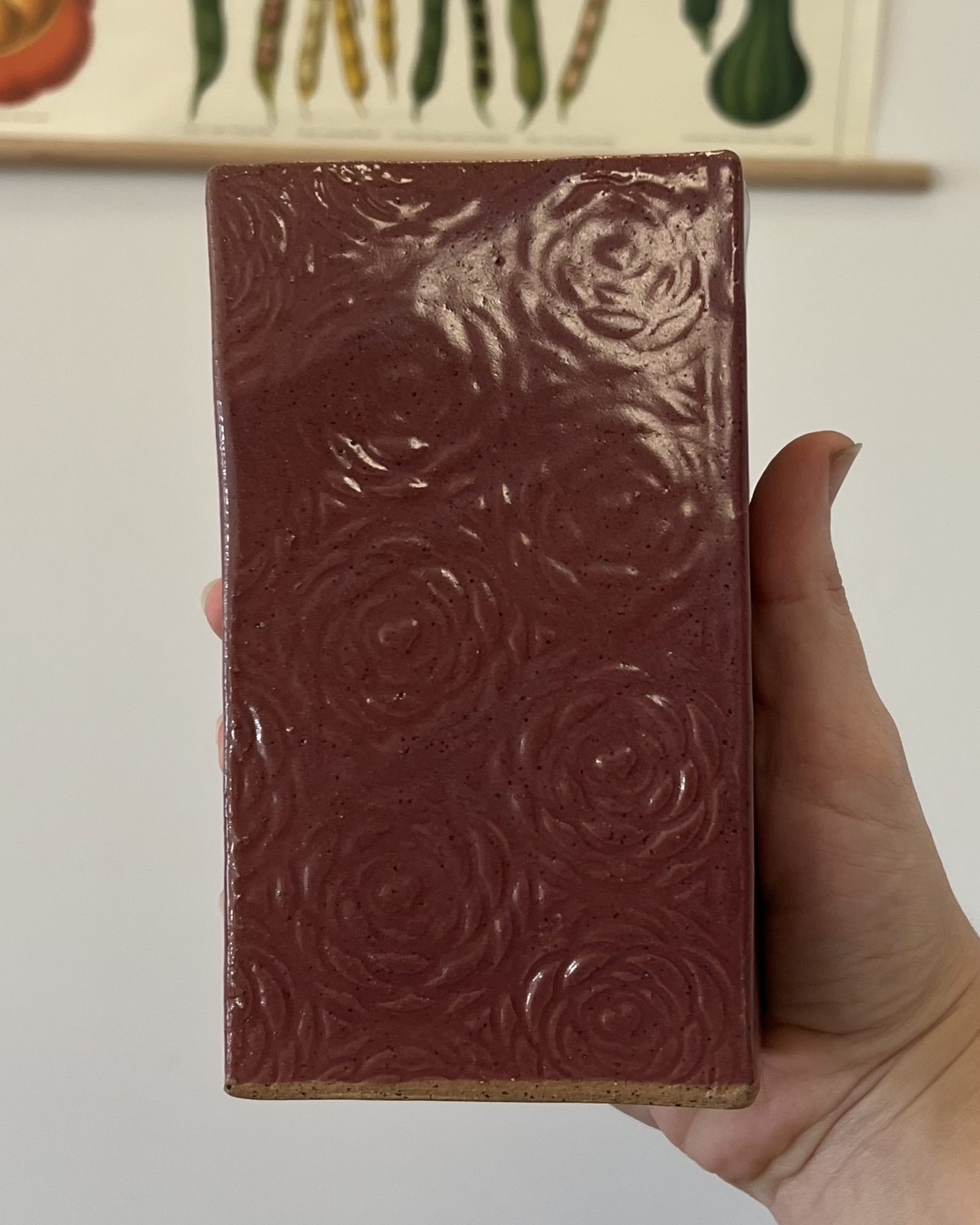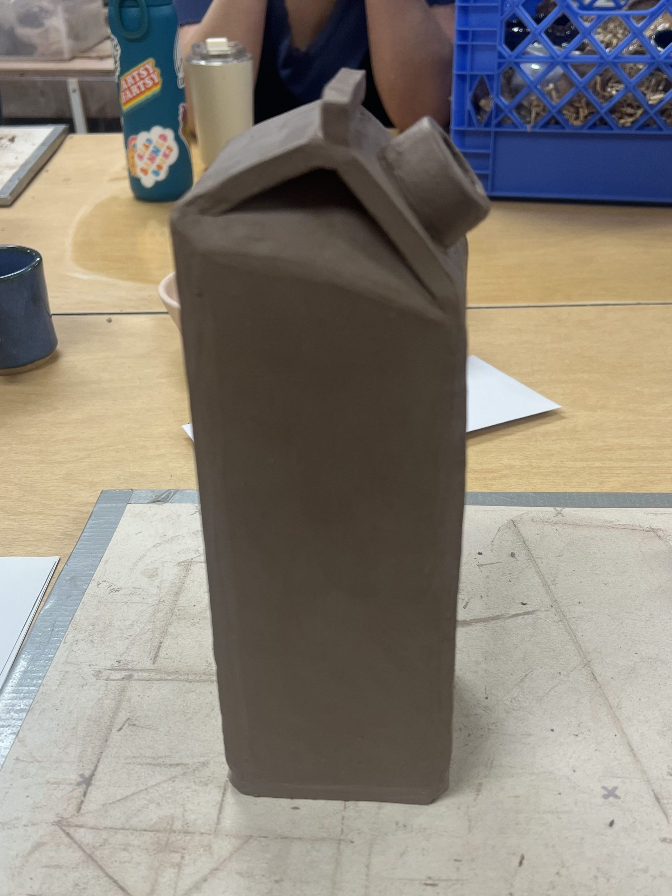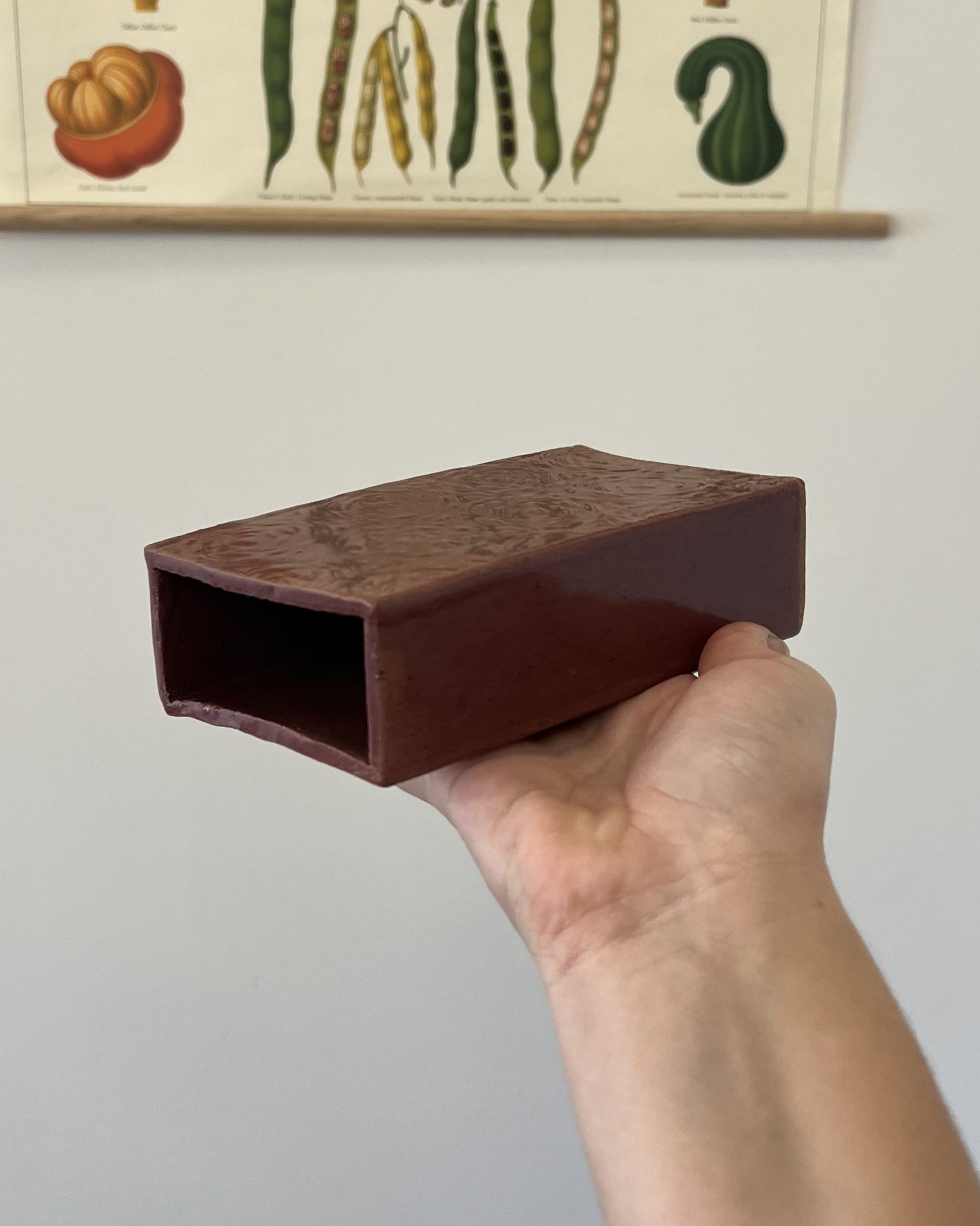 Another stiff slab build that I worked on was this box. It was supposed to be a box with a drawer inside, but there were problems with my slip bonding not holding, and the drawer not fitting properly during the drying process. It is now a rectangular box with an open end that is functioning as a bookend on my shelf, and it holds my extra bookmarks.
