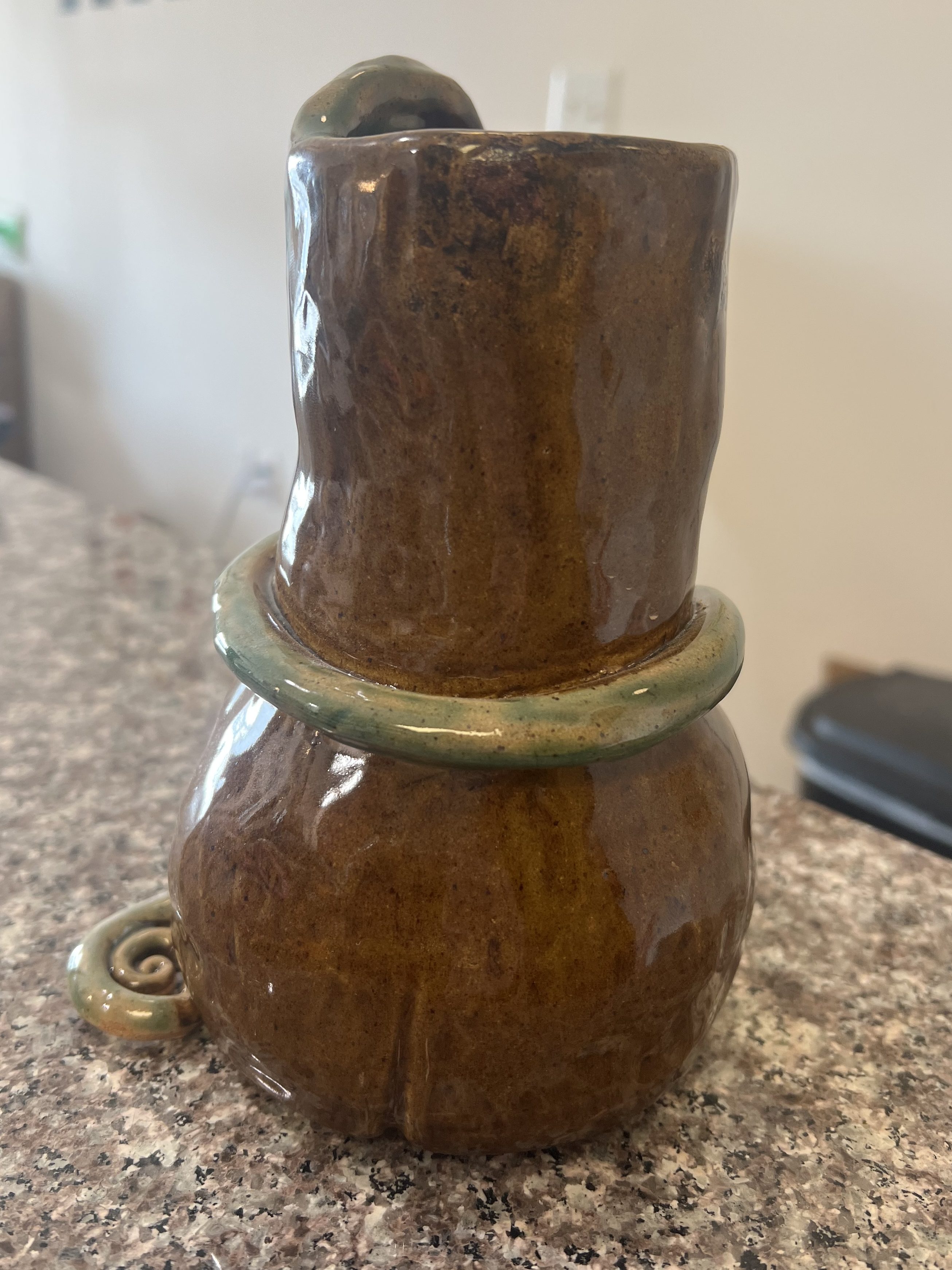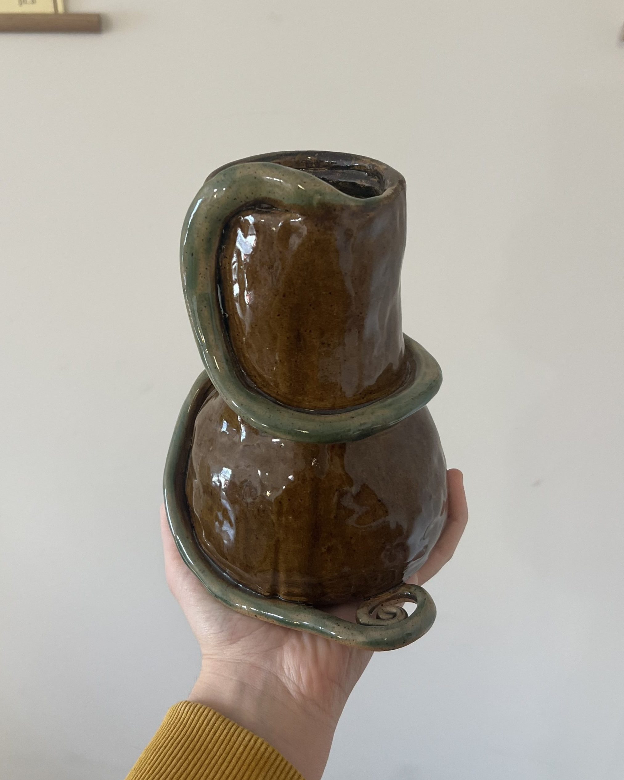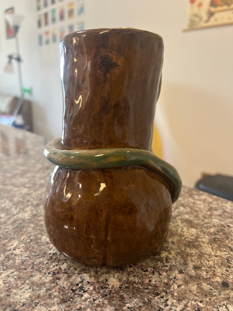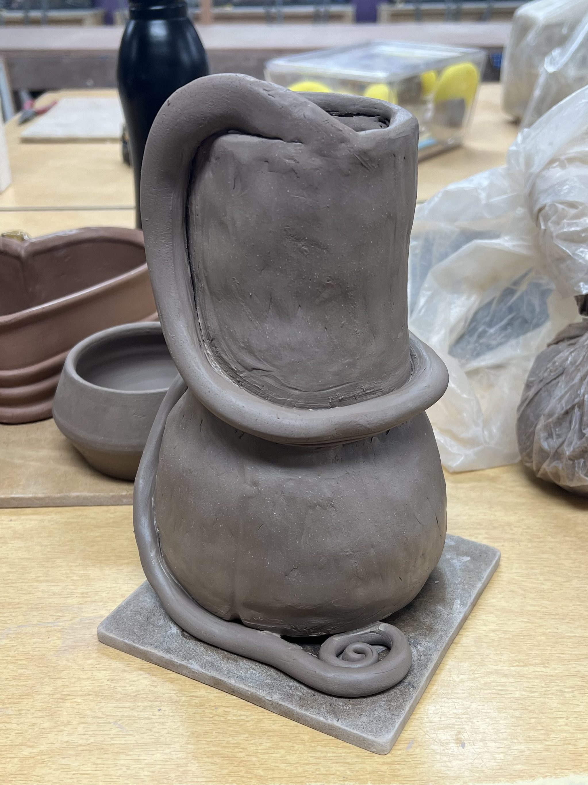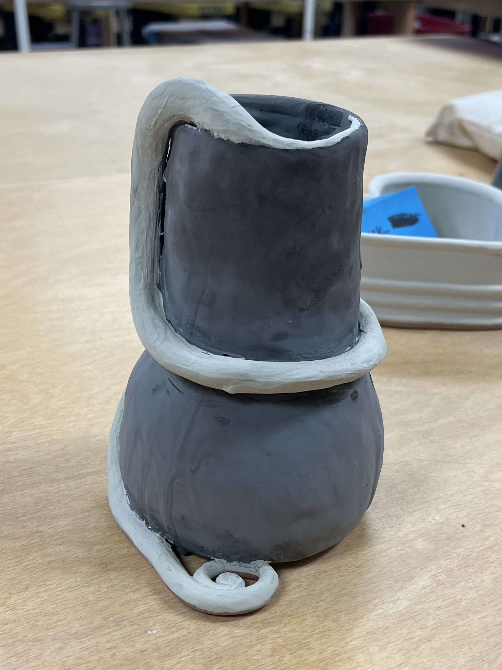 Another technique that we used was coiling. When starting this piece, I had no vision of what I was making, but it turned into this gourd vase.