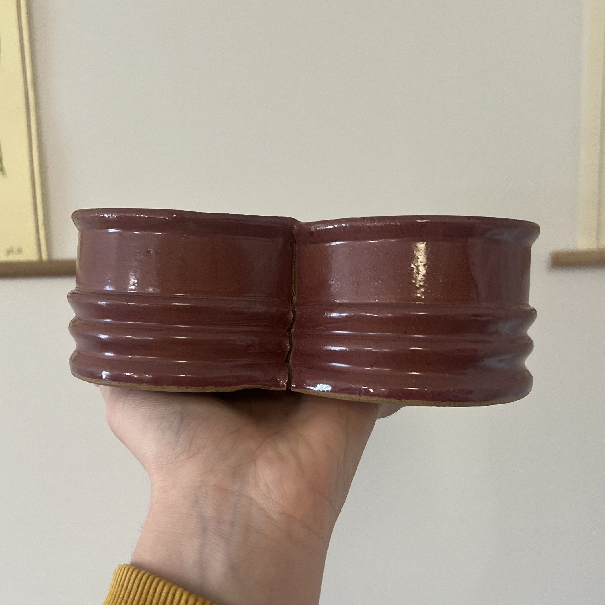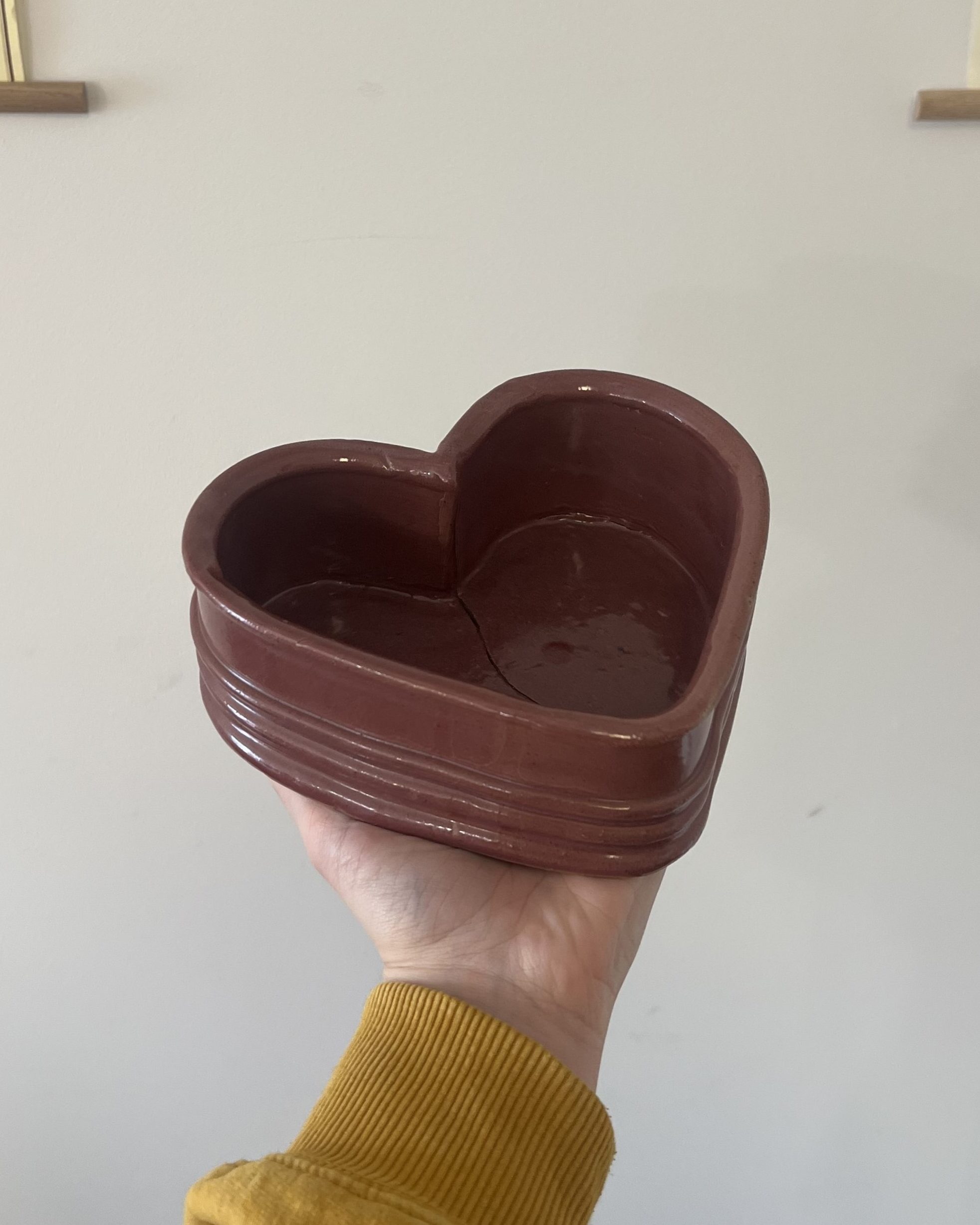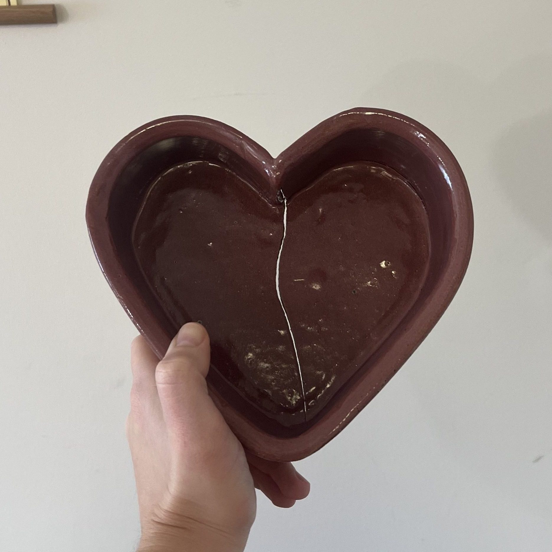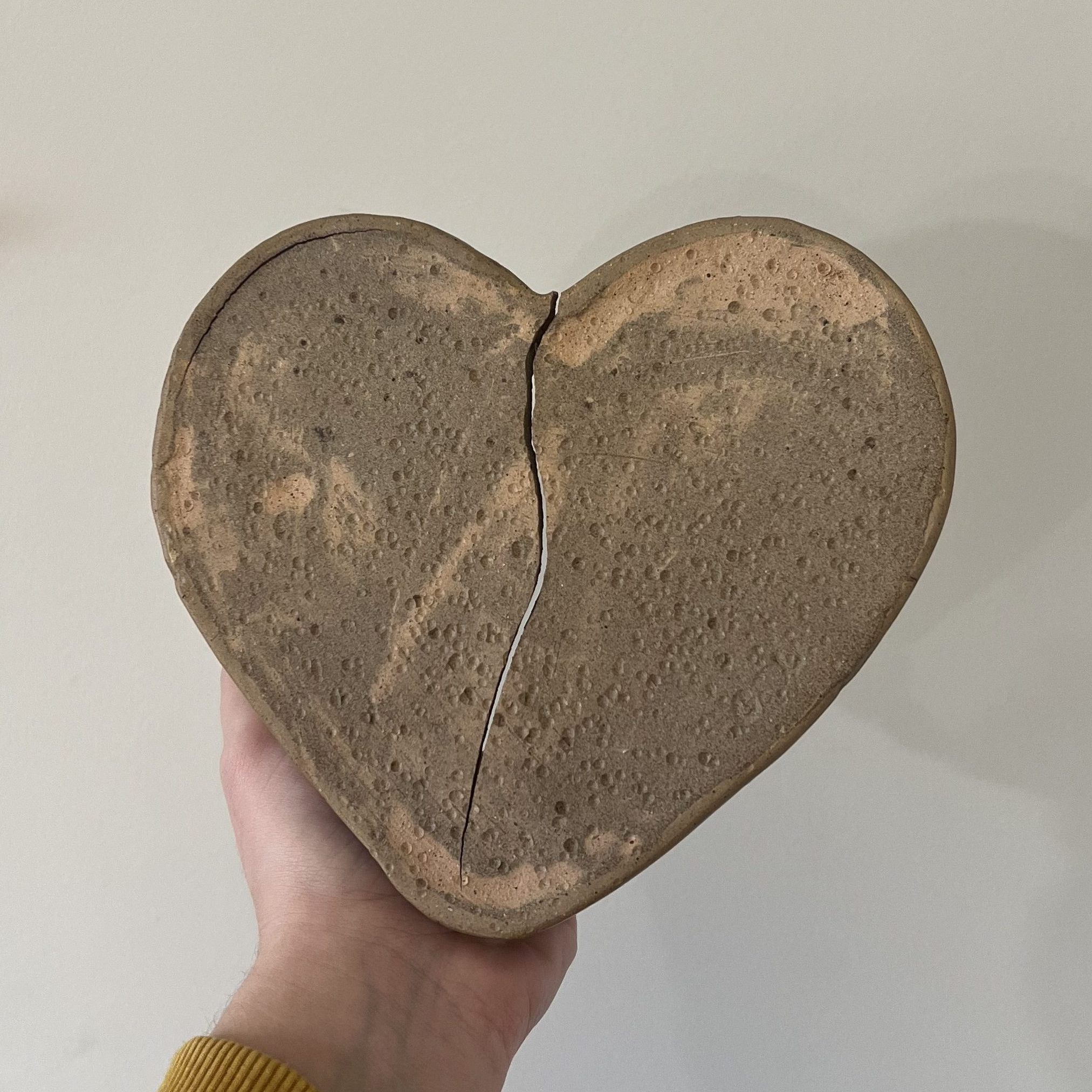 The biggest heartbreak (literally) of this class was this casserole dish. This piece was the one I was most excited for, but it cracked during the firing process. We used an extruder with recycled clay to make this piece, and I think a combination of the recycled clay and drying too quickly is the main culprit for the cracks.