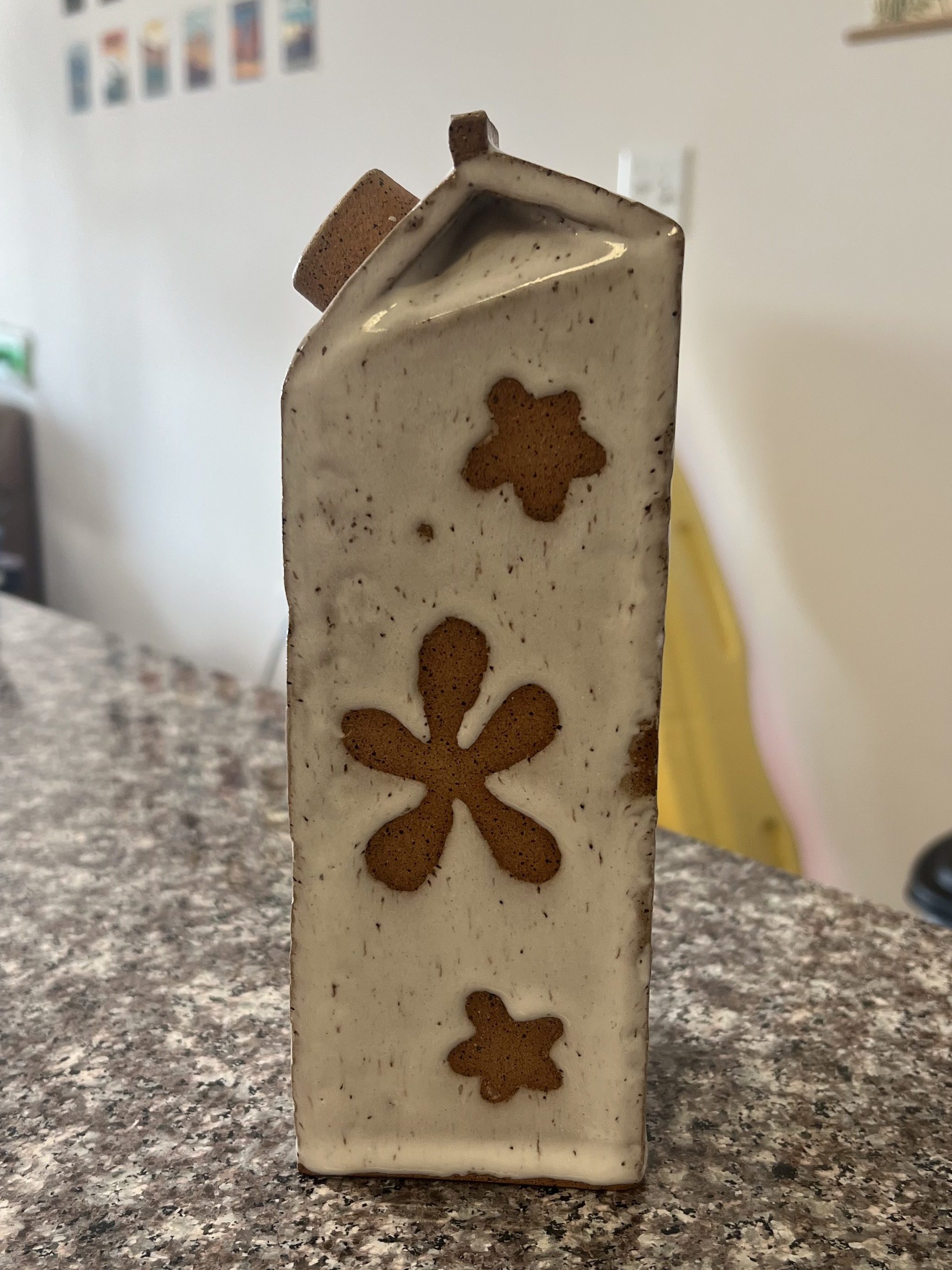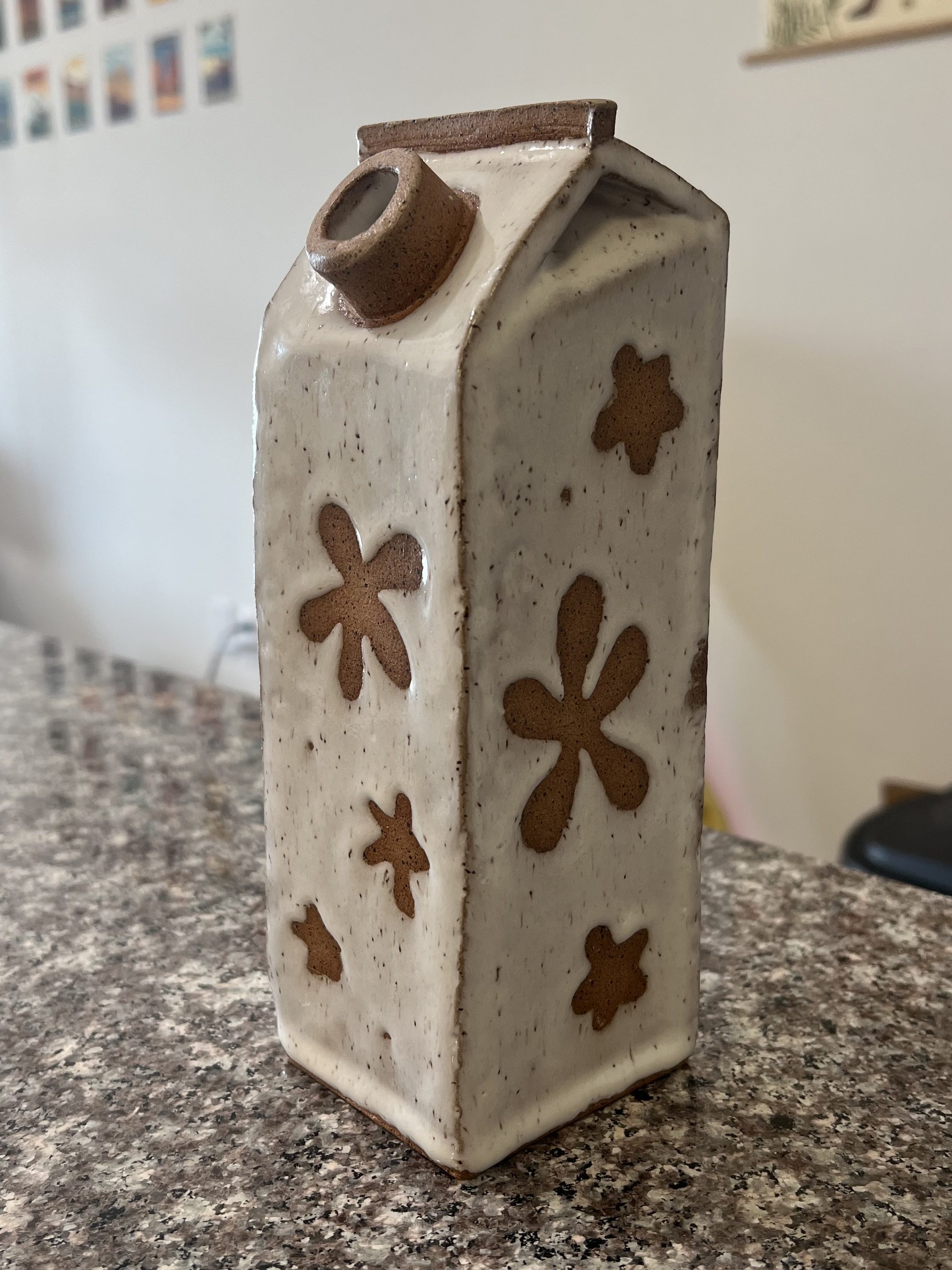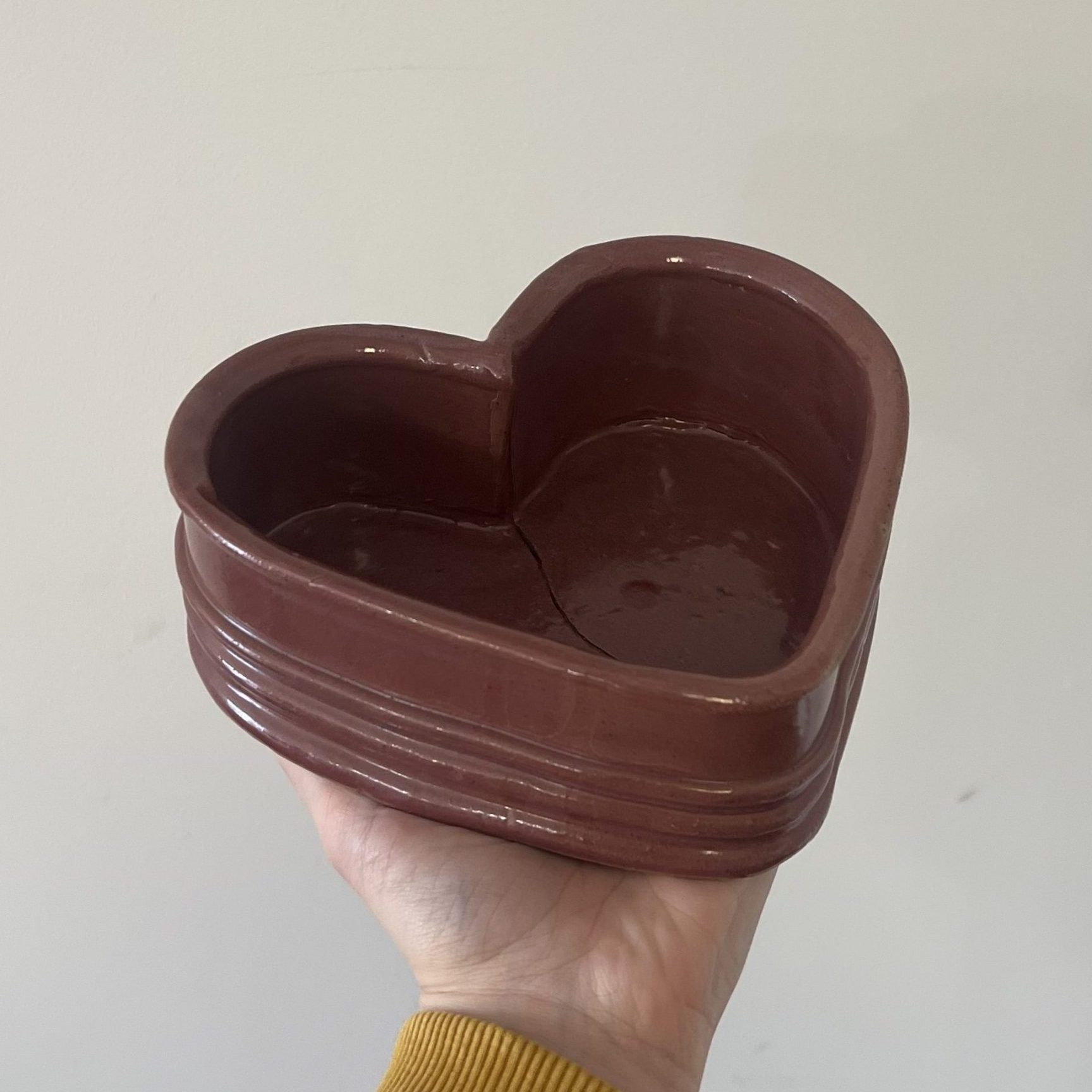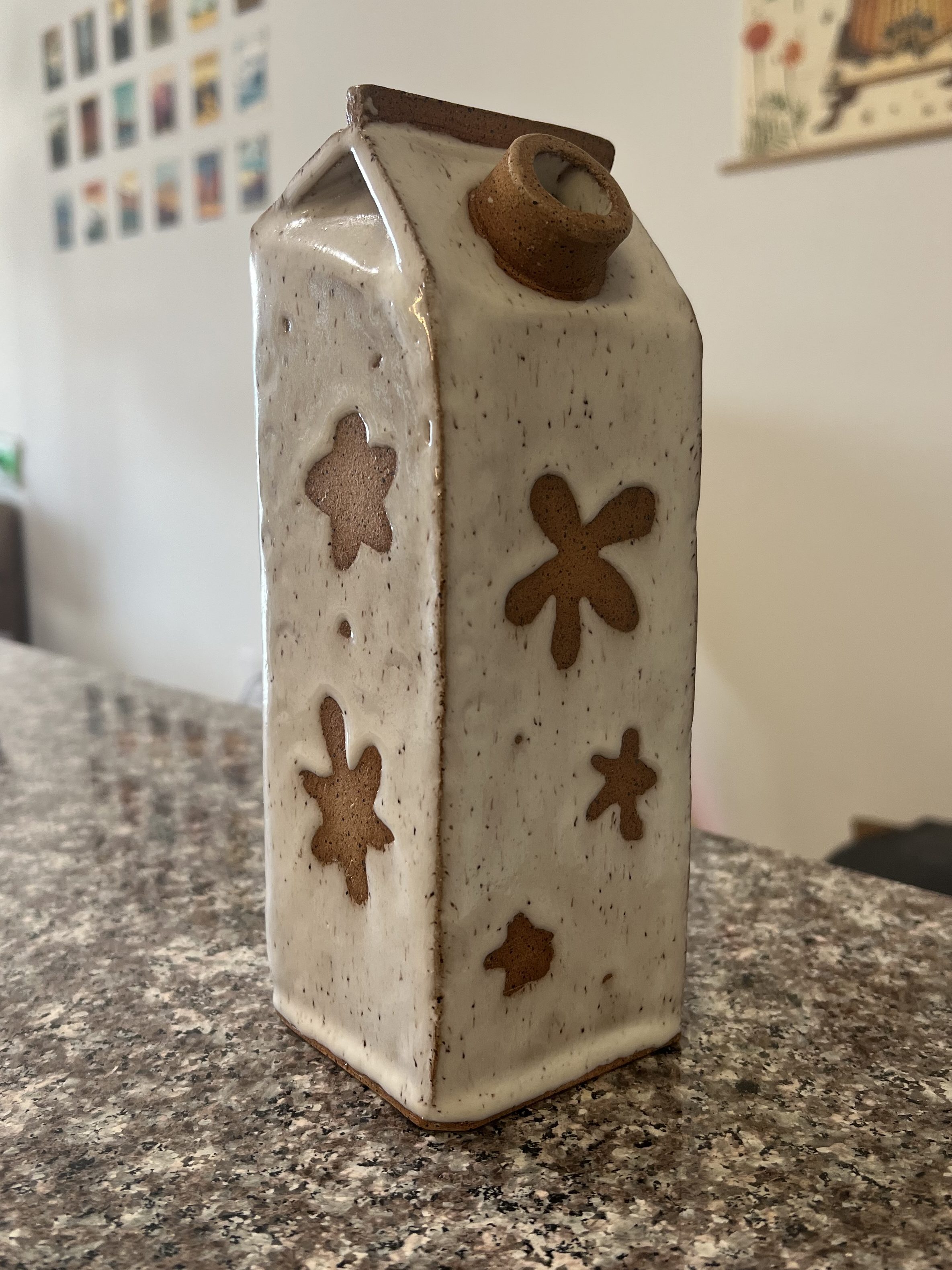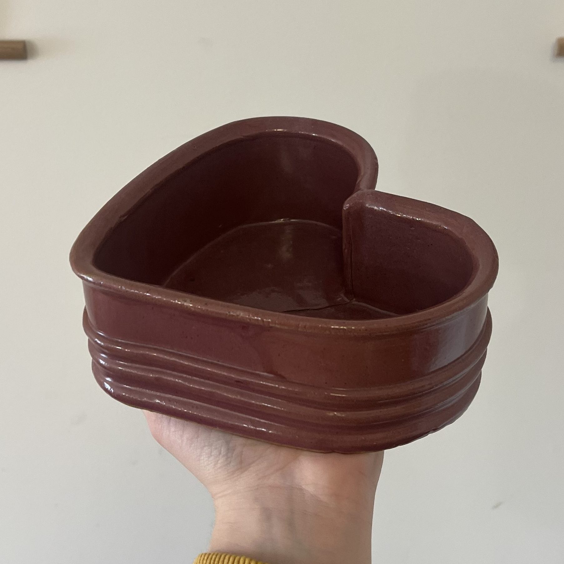 The biggest heartbreak (literally) of this class was this casserole dish. This piece was the one I was most excited for, but it cracked during the firing process. We used an extruder with recycled clay to make this piece, and I think a combination of the recycled clay and drying too quickly is the main culprit for the cracks.